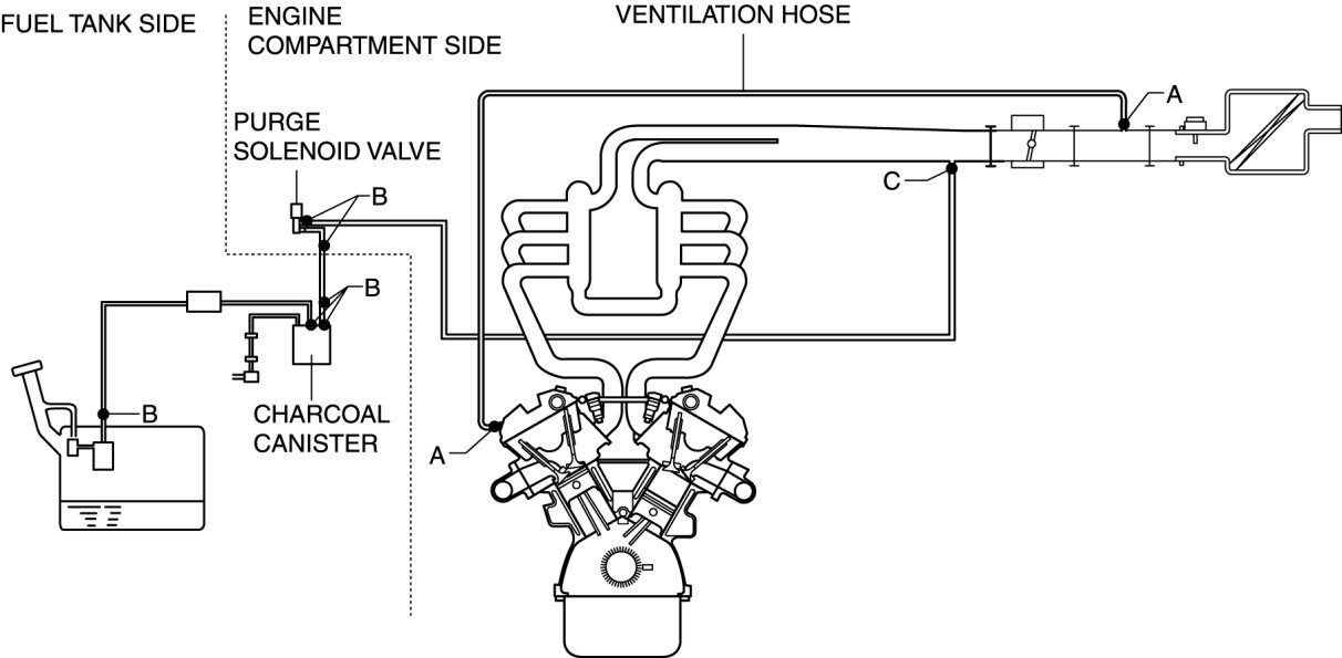 1. Inspect the evaporative hose and evaporative pipe sealing surface for damage and deformation.