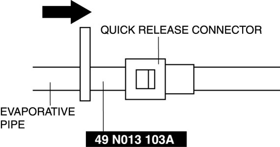 - A checker tab is integrated with the quick release connector for new evaporative hoses and evaporative hoses. Remove the checker tab from the quick release connector after the connector is completely engaged with the evaporative pipe.