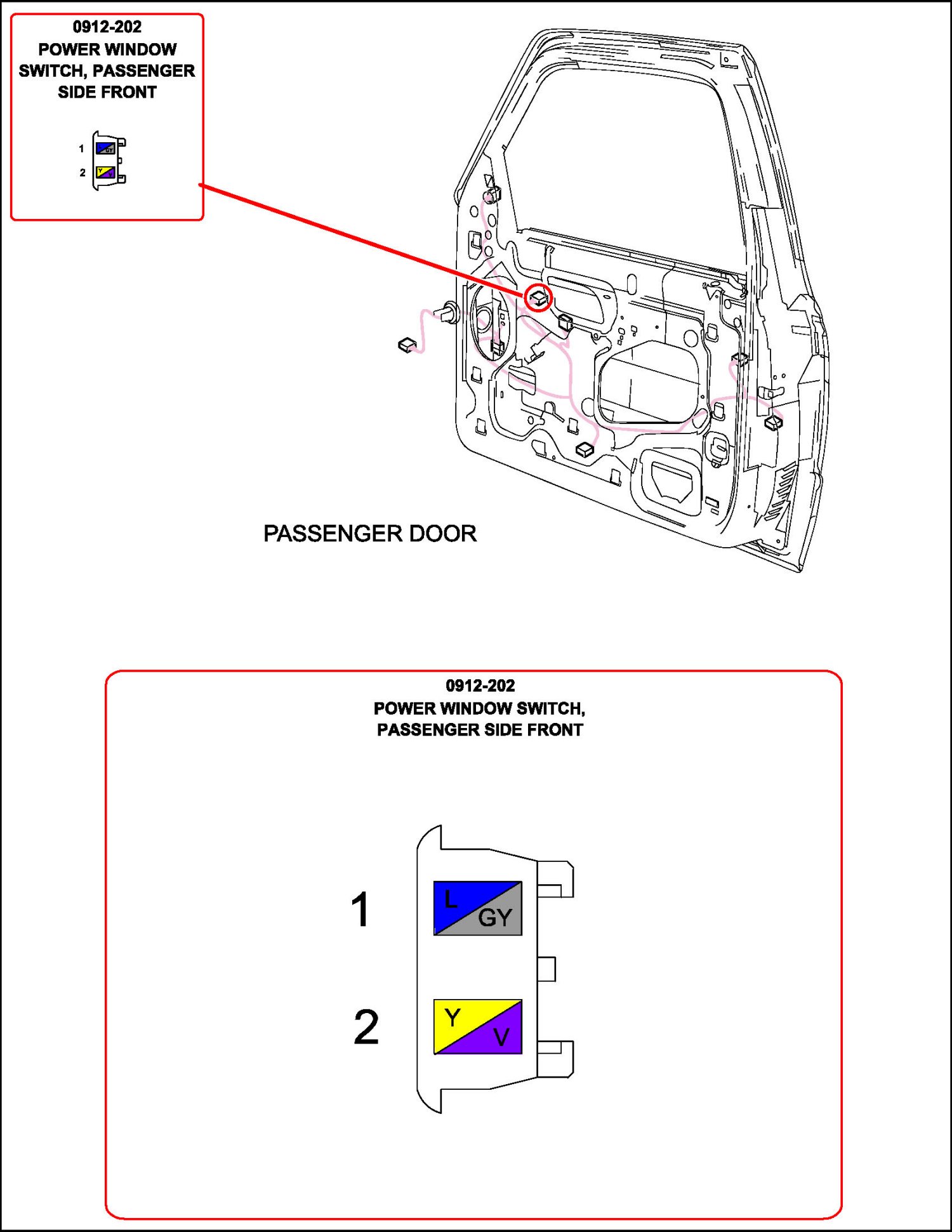 Power Window Switch, Passenger Side Front: