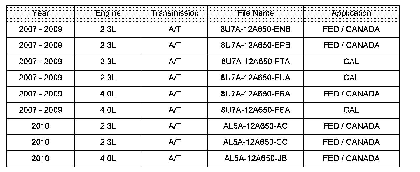 2. Using 1DS64.10 and higher or 65.01 and higher software, reprogram the PCM to the latest calibration (refer to Calibration Information" table) by following the "Module Reprogramming" procedure. This new calibration is not included in the VCM 2010.1 DVD.