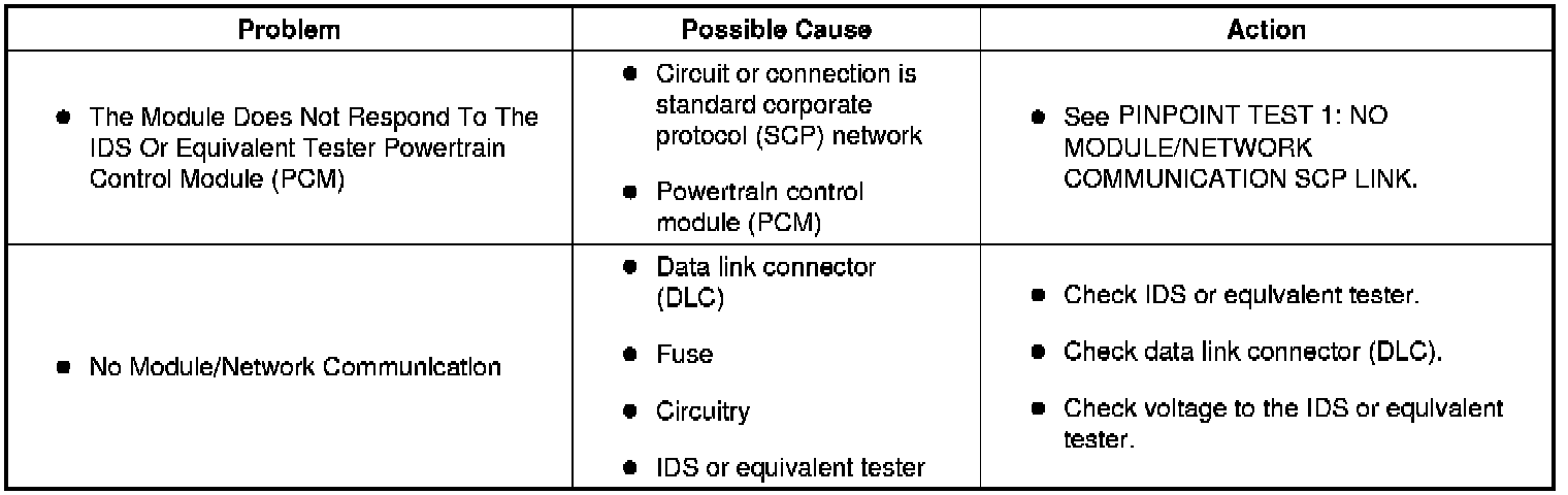 Symptom Troubleshooting Chart - Powertrain Control Module (PCM)