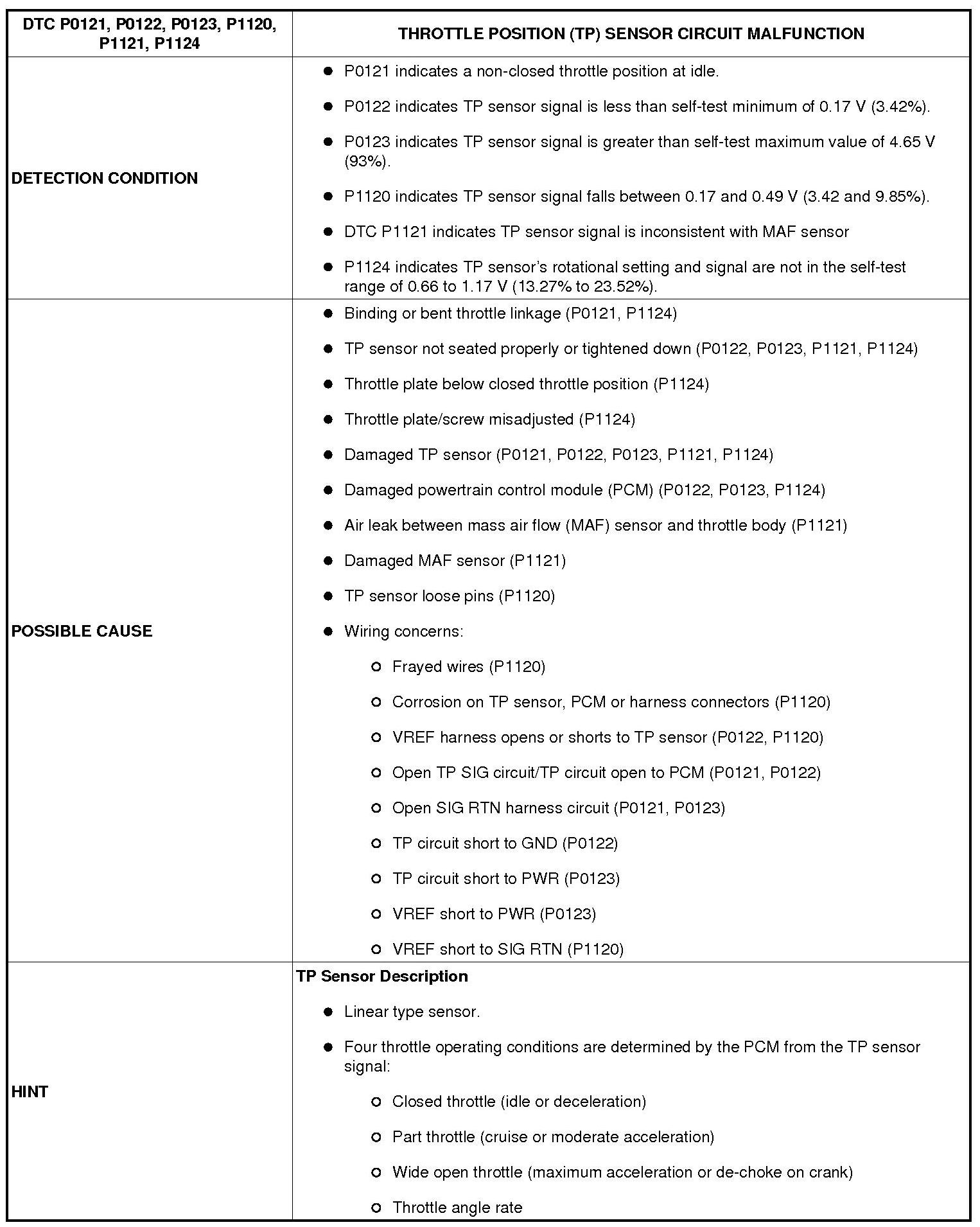 THROTTLE POSITION (TP) SENSOR CIRCUIT MALFUNCTIONDetection Condition/Possible Cause (Part 1):