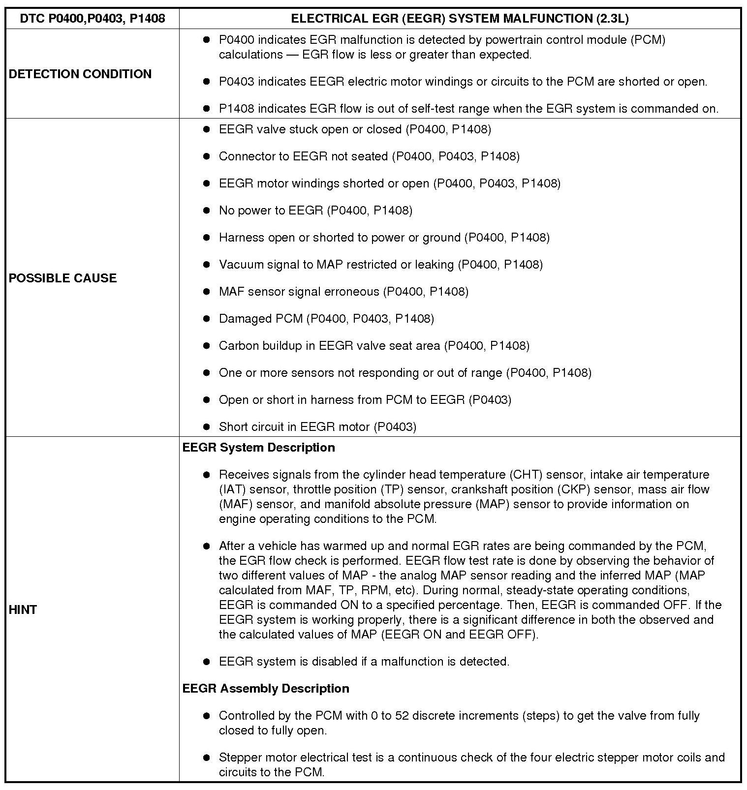 (EEGR) SYSTEM MALFUNCTION - 2.3L