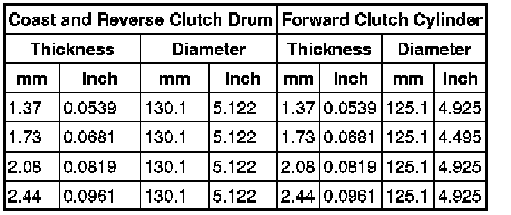 Clutch Plate Usage And Clearance Specifications (5R44E and 5R55E)