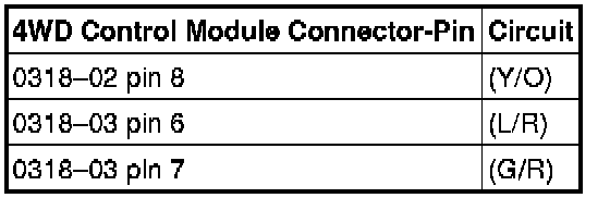 The 4WD control module communicates with the scan tool through the high speed controller area network (HS-CAN). Circuits (W/L) (HS-CAN +) and (W) (HS-CAN -) provide the network connection to the 4WD control module. The 4WD control module shares the HS-CAN with the powertrain control module (PCM), the restraints control module (RCM), the occupant classification sensor module (OCSM), the instrument cluster, and the smart junction box (SJB). Voltage is supplied by circuits (L/R), (G/R) and (Y/O). Ground is supplied by circuits (B/Y) and (B/W).