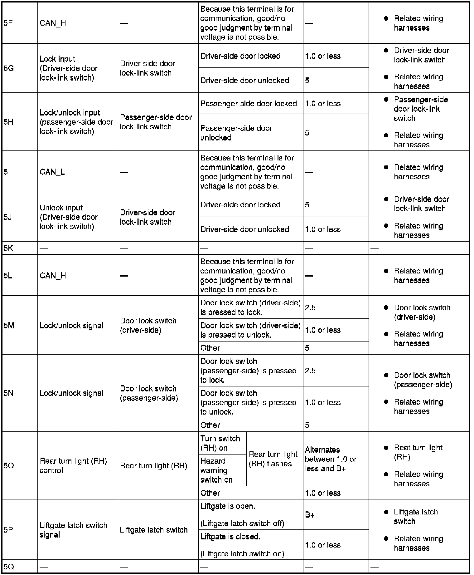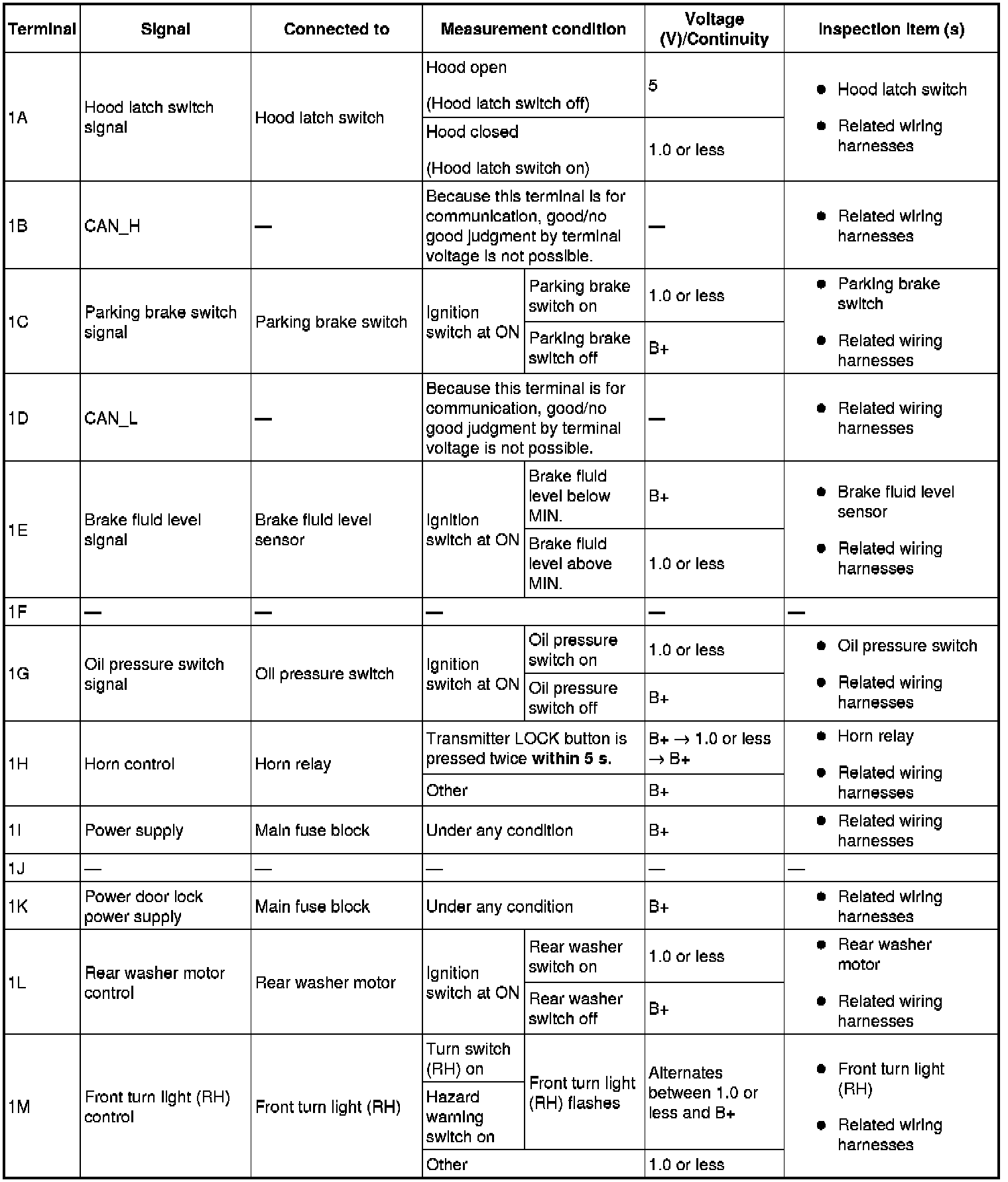 Home >> Mazda >> 2009 >> CX-7 AWD L4-2.3L Turbo >> Repair and Diagnosis >> Powertrain Management >> Relays and Modules - Powertrain Management >> Relays and Modules - Computers and Control Systems >> Body Control Module >> Testing and Inspection >> Pinout Values and Diagnostic Parameters
