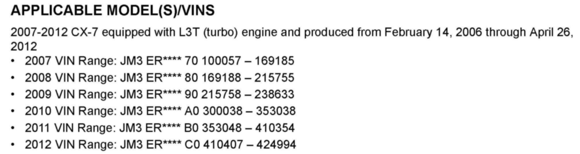 ^ UNDER THE MAZDA SERVICE PROGRAM (MSP36), ALL CURRENT DEALER INVENTOR AND RETAILED VEHICLES FOUND TO BE WITHIN THE ABOVE VIN AND PRODUCTION DATES RANGES MUST BE REPAIRED ACCORDING TO THE INSTRUCTIONS CONTAINED IN THIS SERVICE BULLETIN.