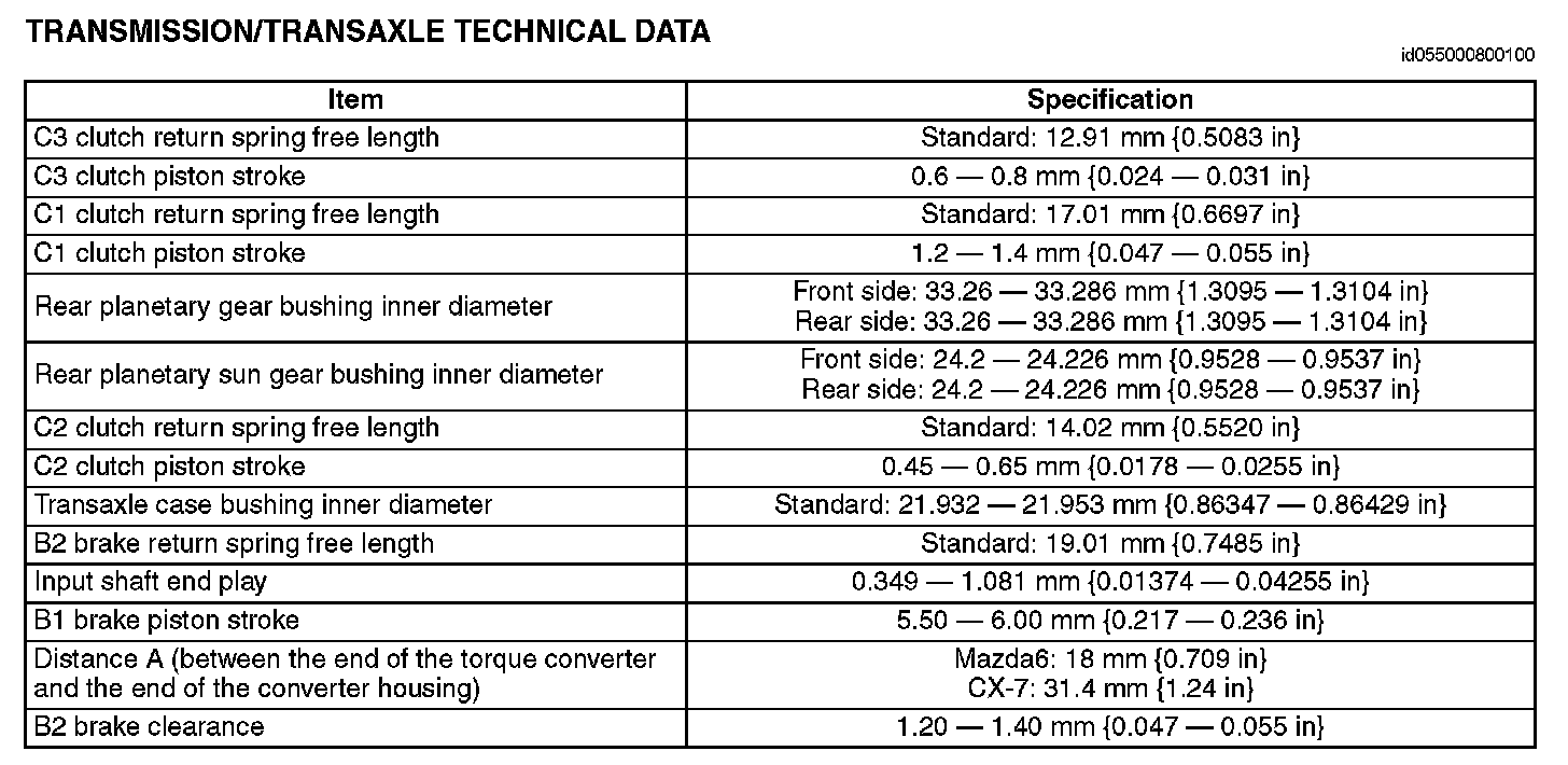 Transmission/Transaxle Technical Data: