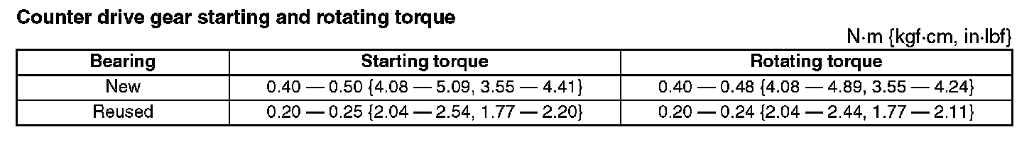 Counter drive gear starting and rotating torque