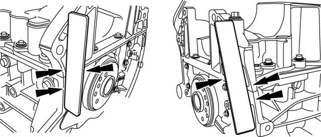 Using a straightedge, align the oil pan flush with the rear of the cylinder block at the two areas as shown.