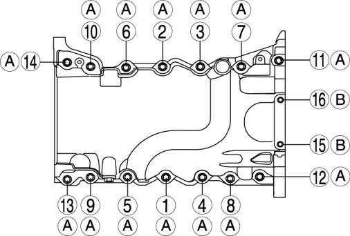 Install the oil pan and the bolts to the cylinder block.a. Tighten the bolts in the order shown in the figure.