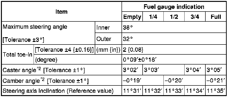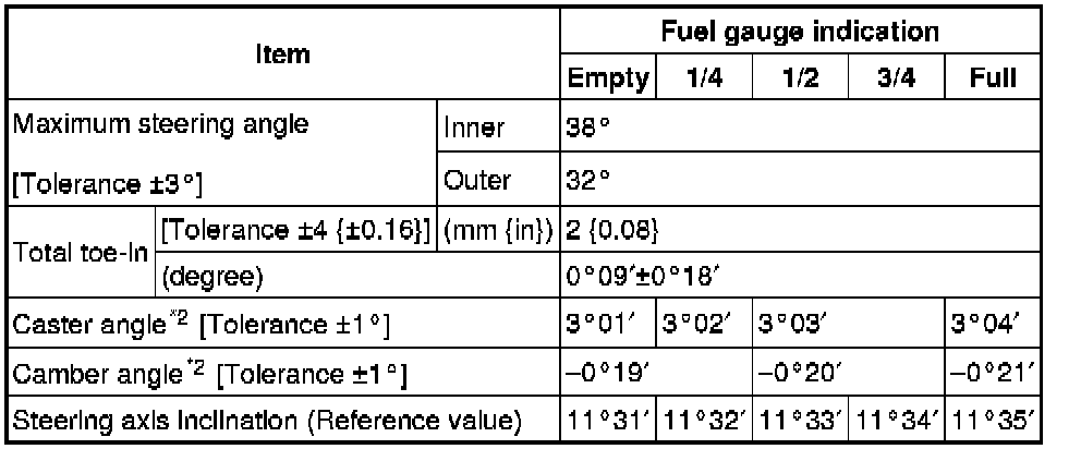 Front wheel alignment [2WD] (Unloaded)*1