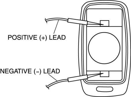 3. While pressing the battery as shown in the figure, press the LOCK and UNLOCK buttons on the transmitter at the same time to start measurement of the voltage.
