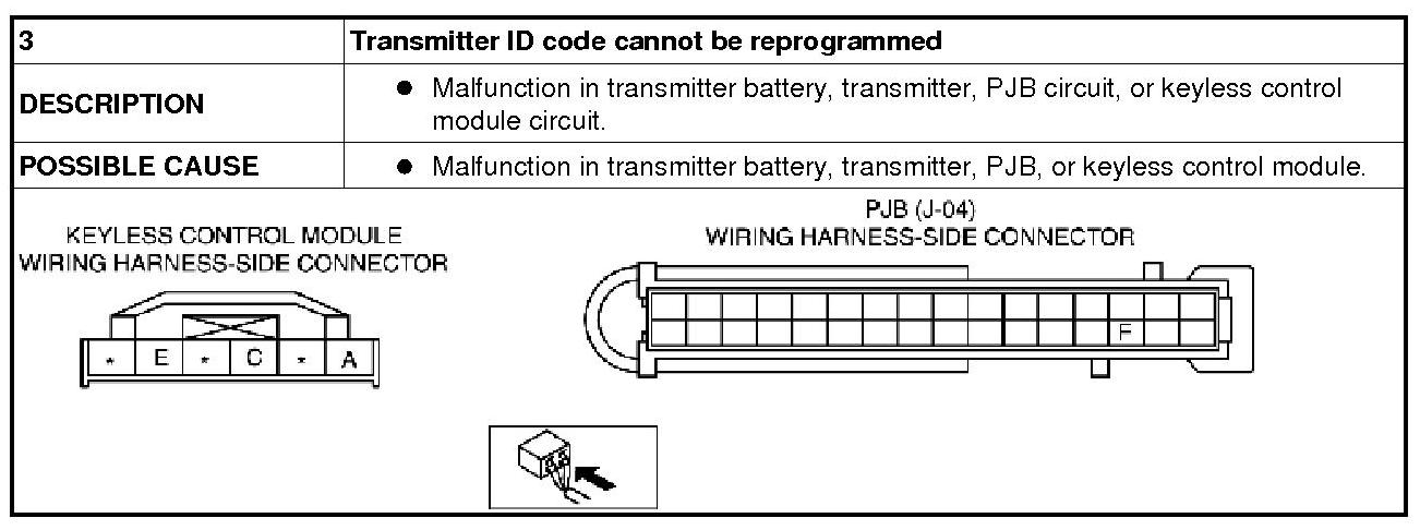 No.3 Transmitter ID Code Cannot Be Reprogrammed [Keyless Entry System]