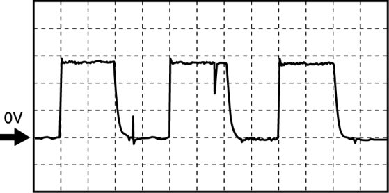 - Oscilloscope setting: 5 V/DIV (Y): 0.4 ms/DIV (X), DC range