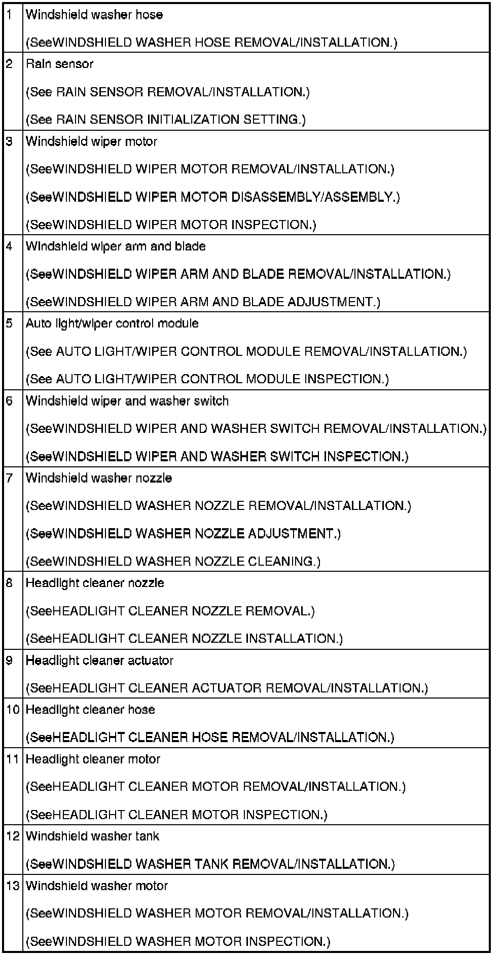 WIPER/WASHER SYSTEM LOCATION INDEX