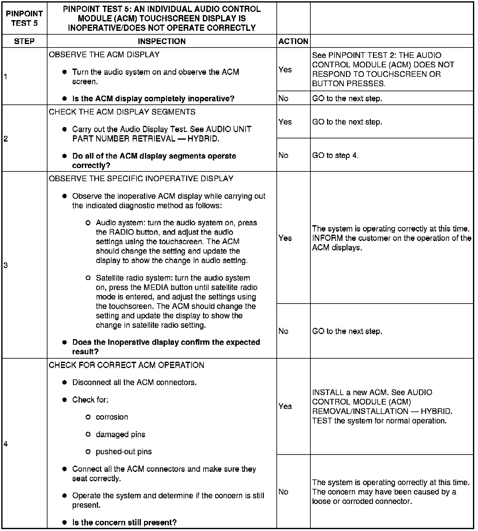 Pinpoint Test 5: An Individual Audio Control Module (ACM) Touch Screen Display Is Inoperative/Does Not Operate Correctly