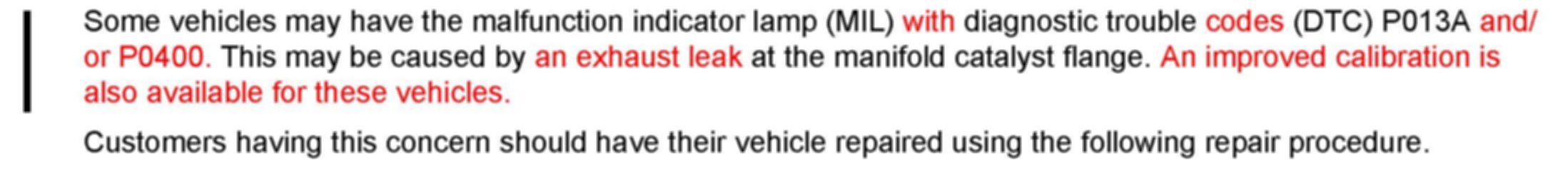 Engine Controls/Exhaust - MIL ON/DTC P013A/P0400