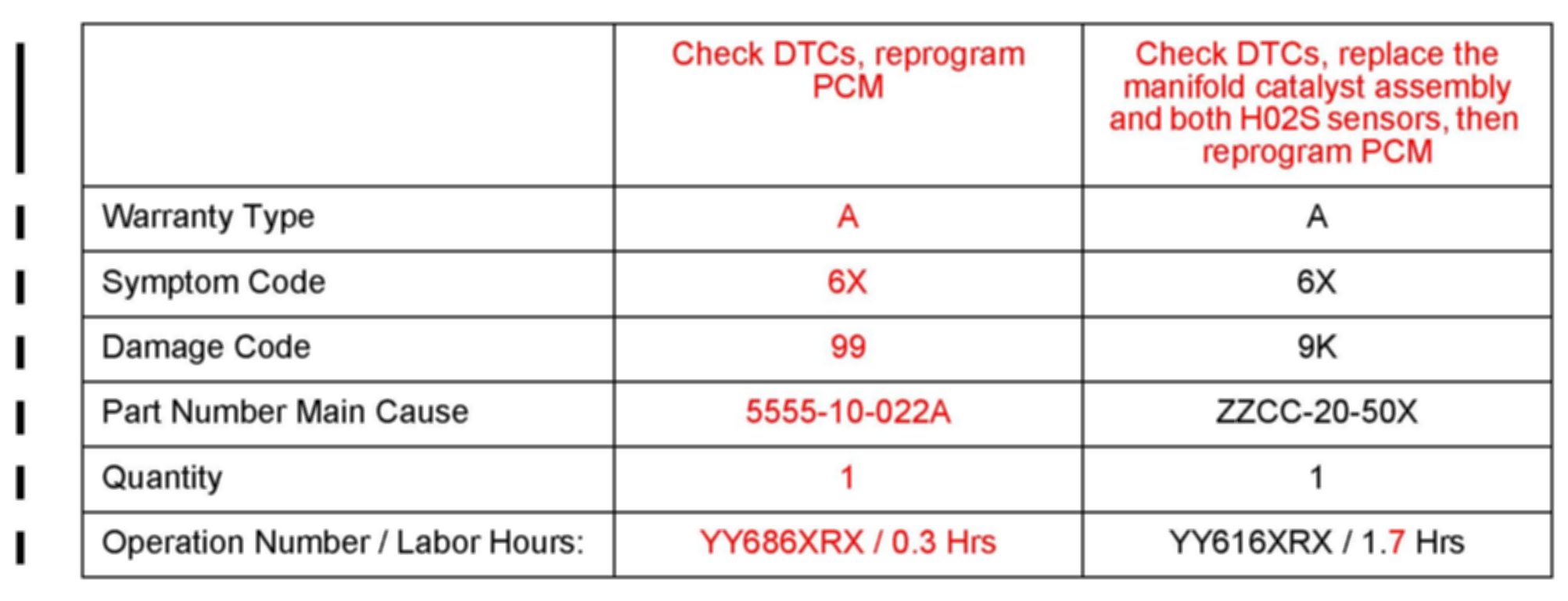 ^ Additionally diagnostic time cannot be claimed for this repair.