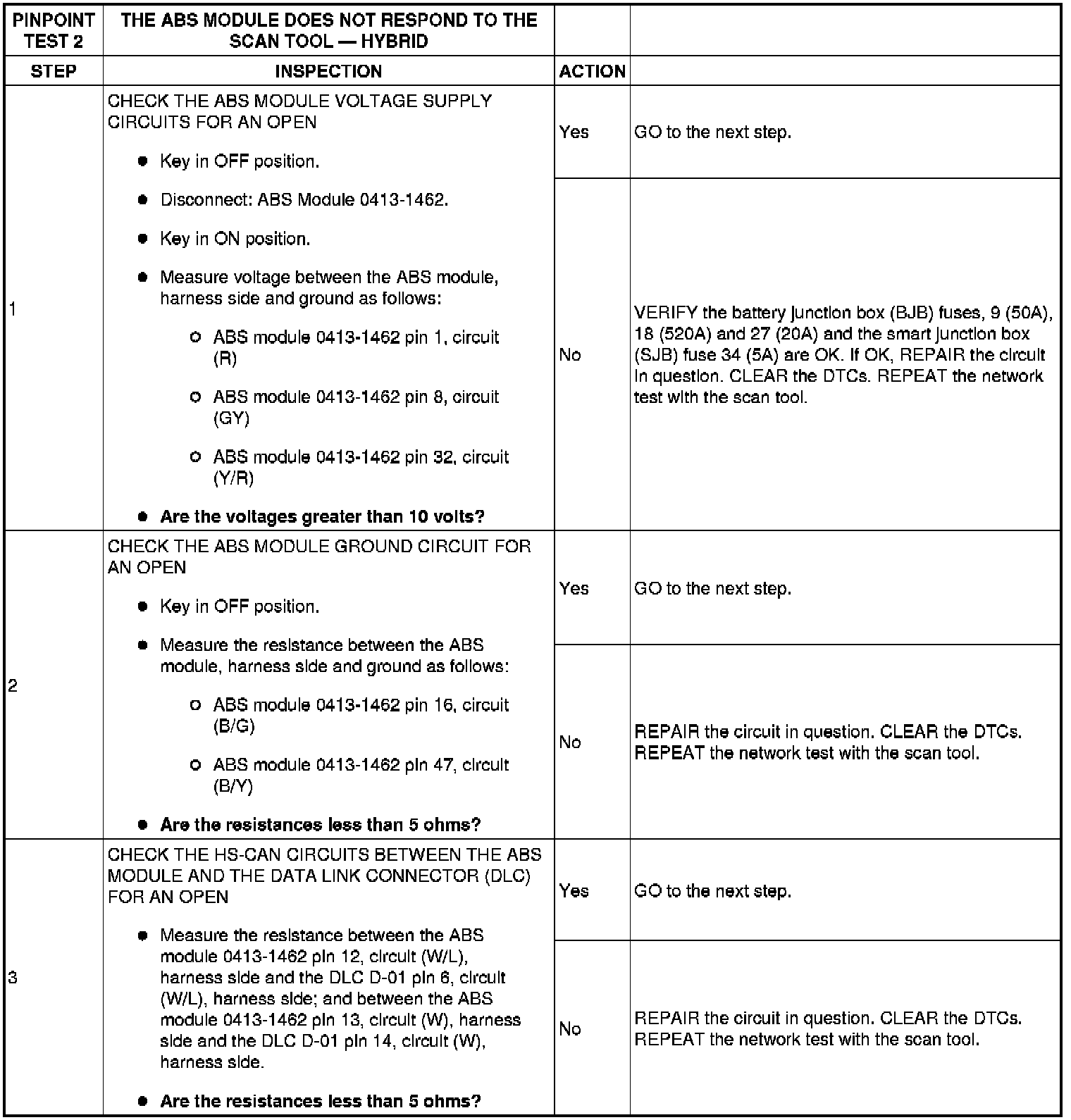 PINPOINT TEST 2: THE ABS MODULE DOES NOT RESPOND TO THE SCAN TOOL - HYBRID