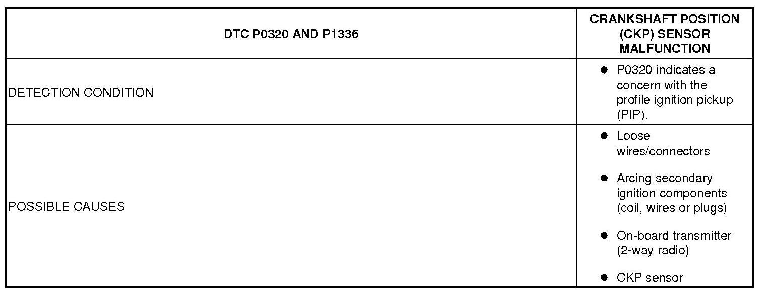 CRANKSHAFT POSITION (CKP) SENSOR MALFUNCTION