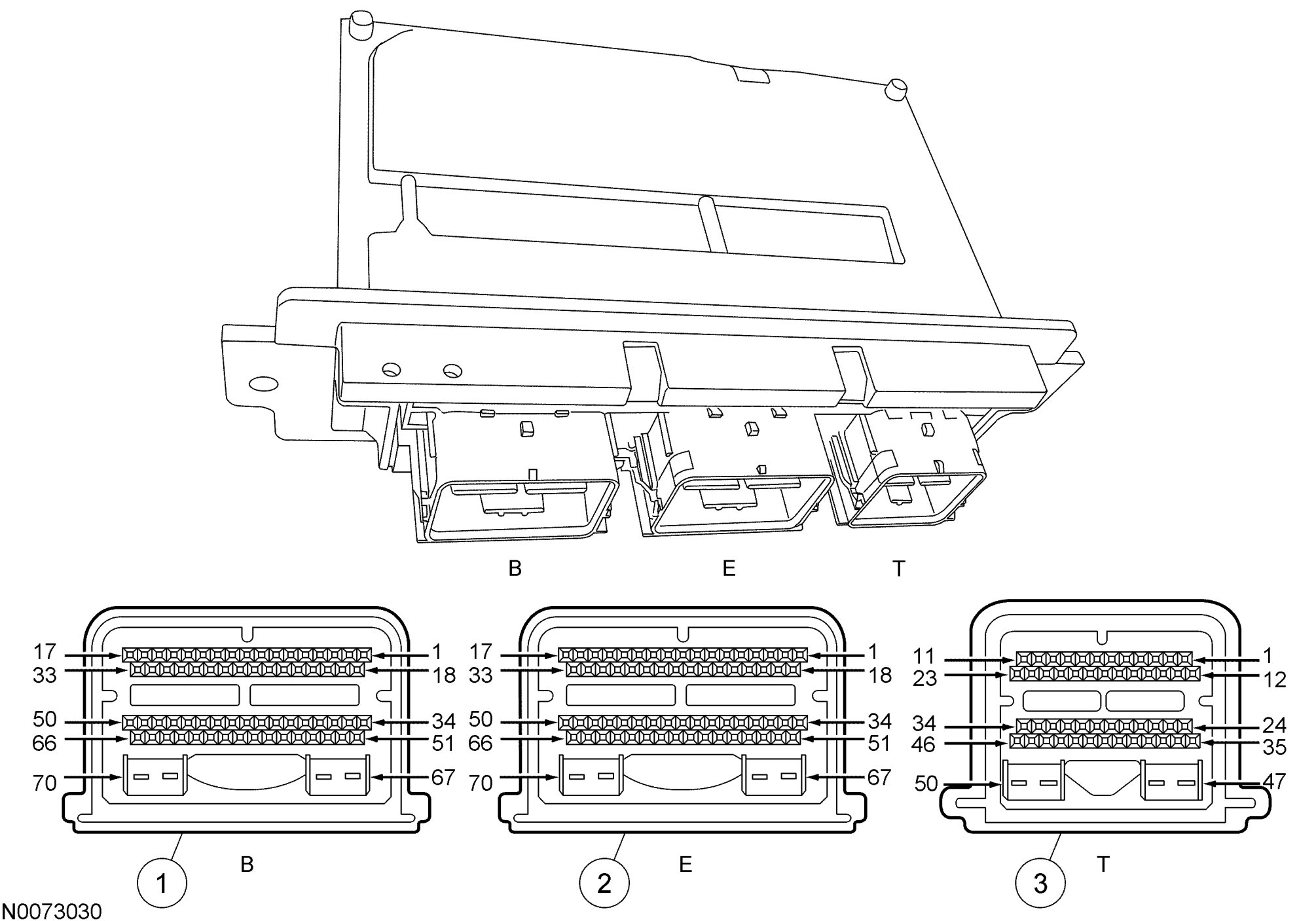 The center of the electronic engine control (EEC) system is a microprocessor called the PCM. The PCM receives input from sensors and other electronic components. Based on information received and programmed into its memory, the PCM generates output signals to control various relays, solenoids, and actuators. The Tribute uses a 150-pin PCM which has 3 separate electrical harness connectors.