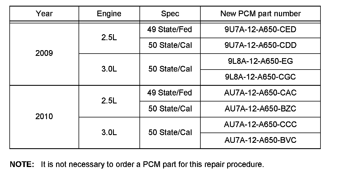 ^ Please be aware that PCM calibration part numbers and file names listed in any Service Bulletin may change due to future releases of IDS software, and additional revisions made to those calibrations for service related concerns.