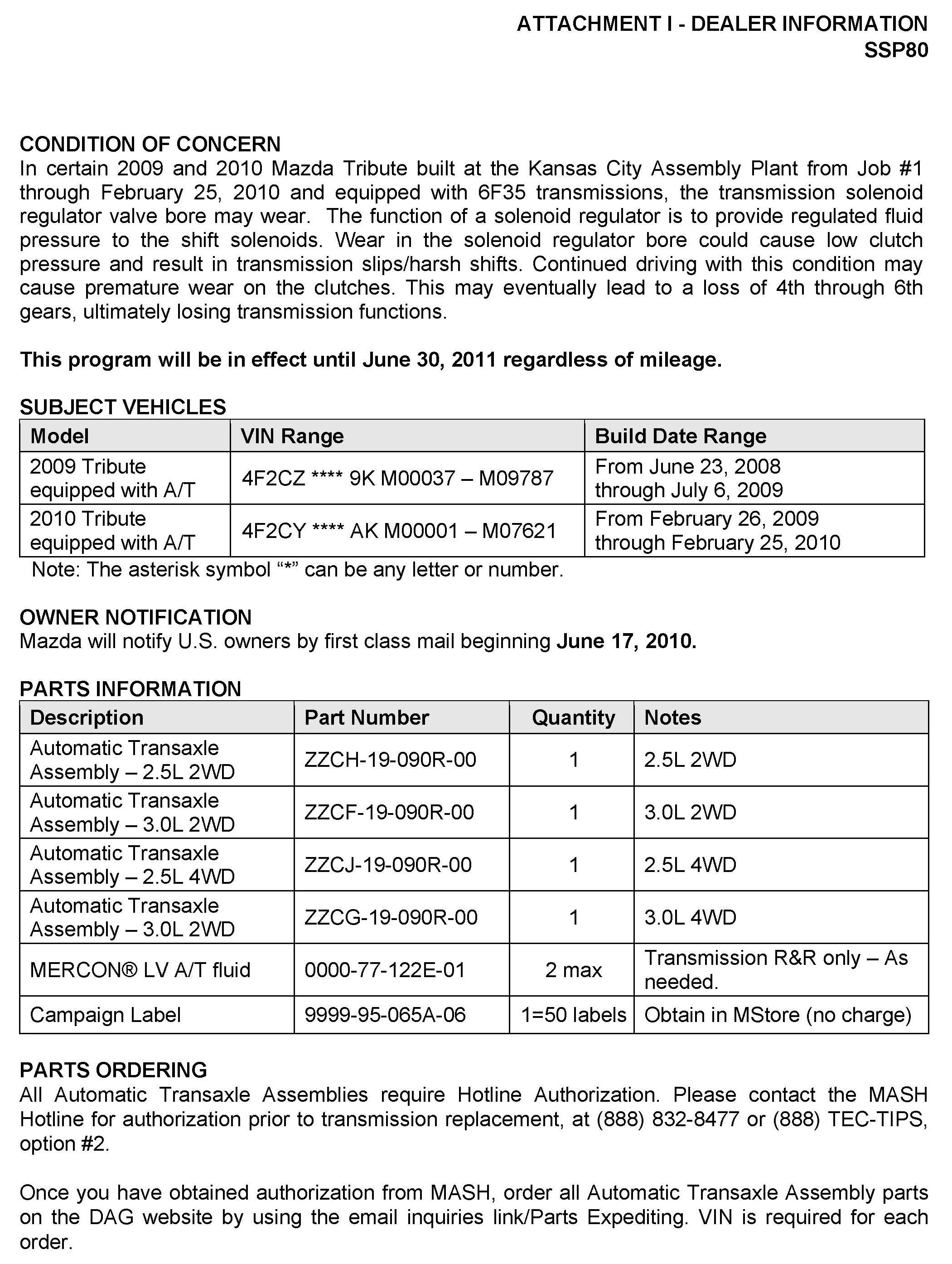Campaign - PCM Update/A/T Clutch Inspection