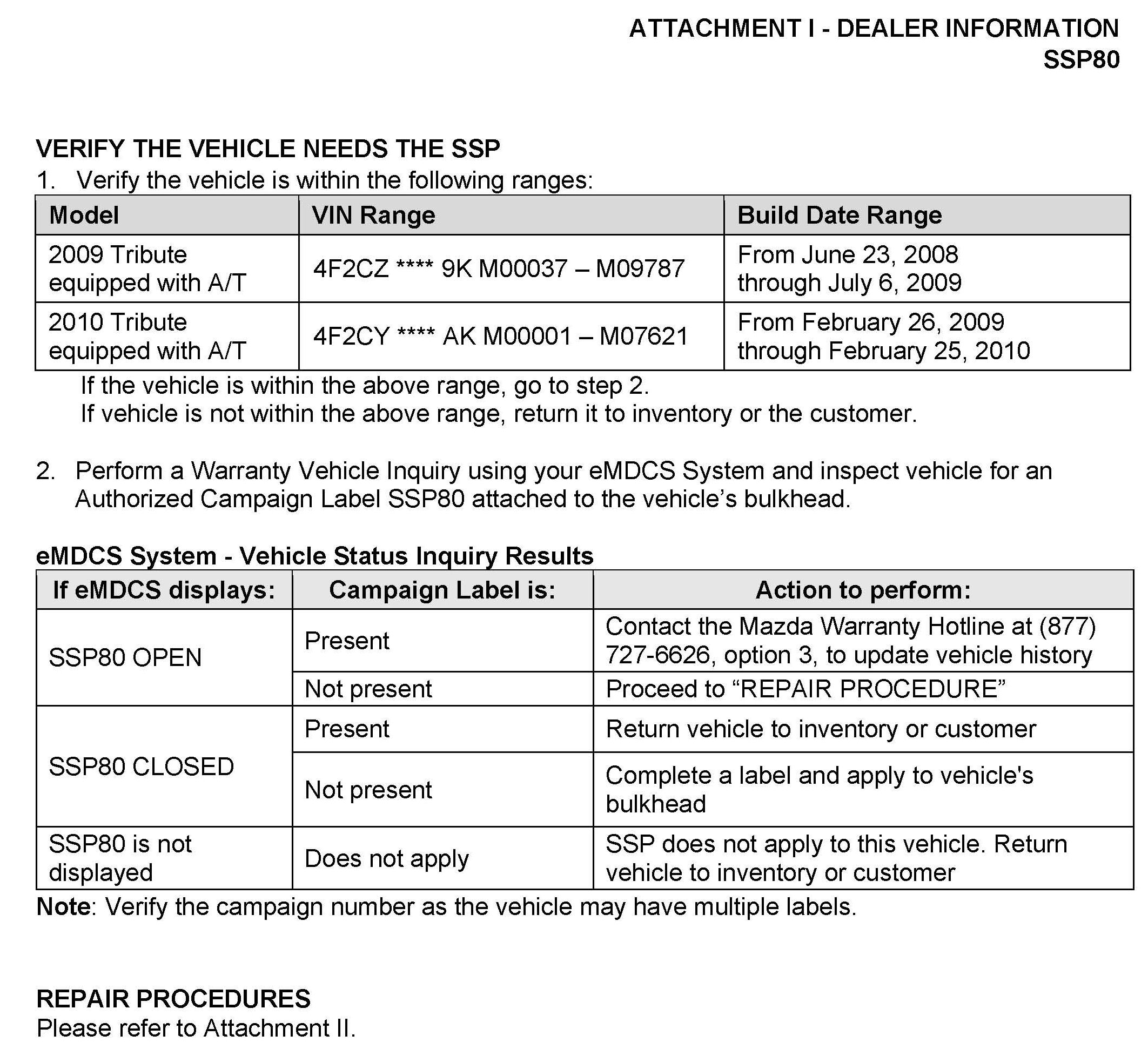 Attachment I - Dealer Information
