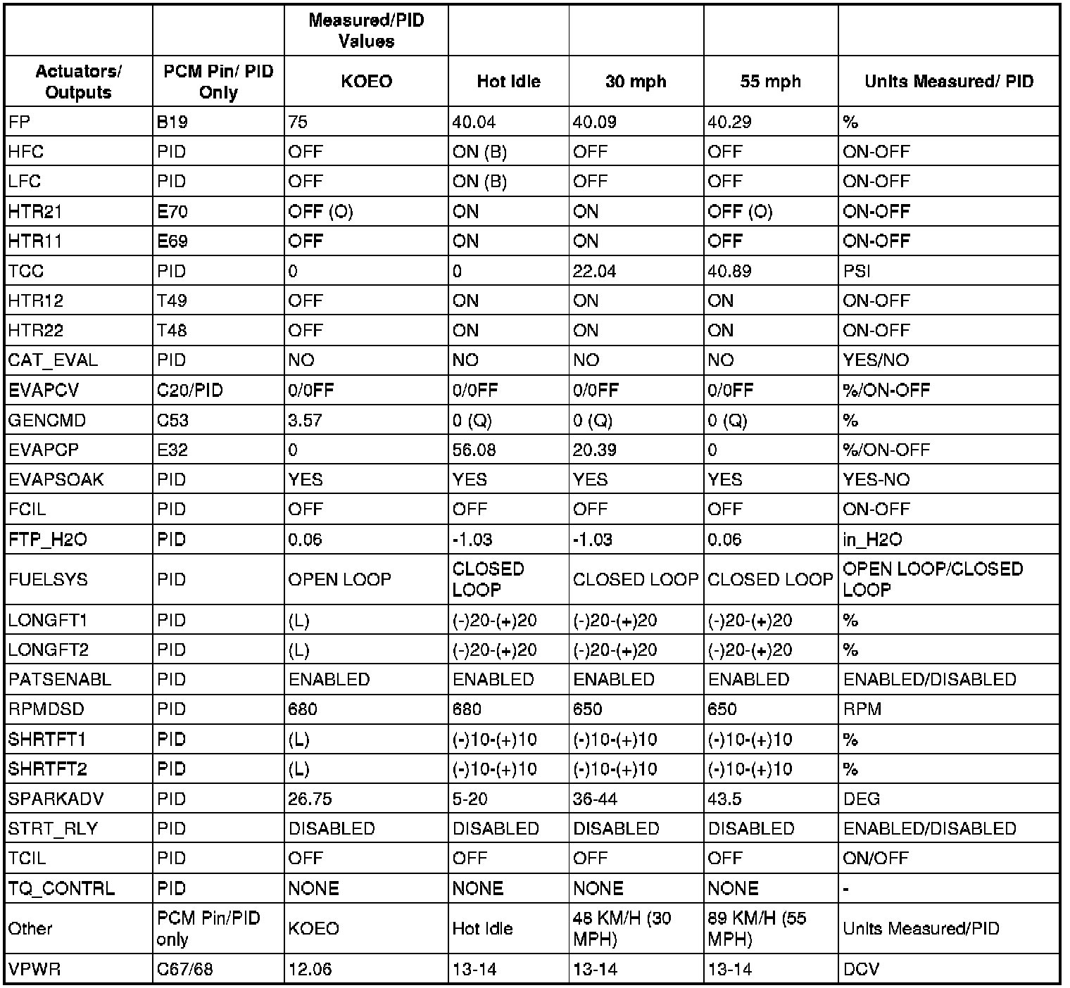 Typical Diagnostic Reference Values (3.0L [4V])