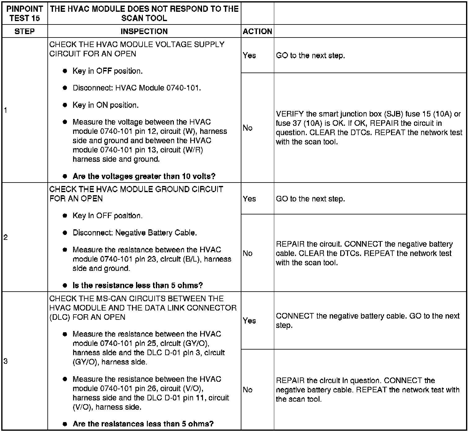 PINPOINT TEST 15: THE HVAC MODULE DOES NOT RESPOND TO THE SCAN TOOL