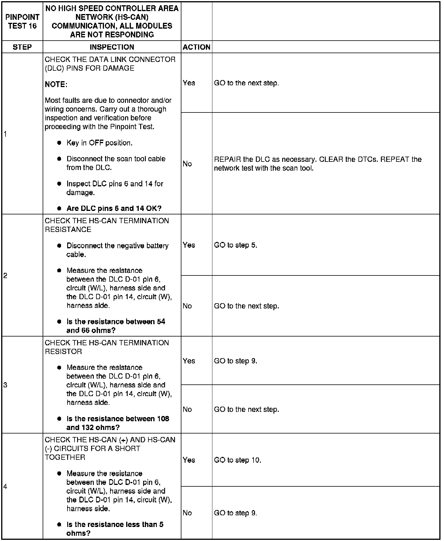 PINPOINT TEST 16: NO HIGH SPEED CONTROLLER AREA NETWORK (HS-CAN) COMMUNICATION, ALL MODULES ARE NOT RESPONDING
