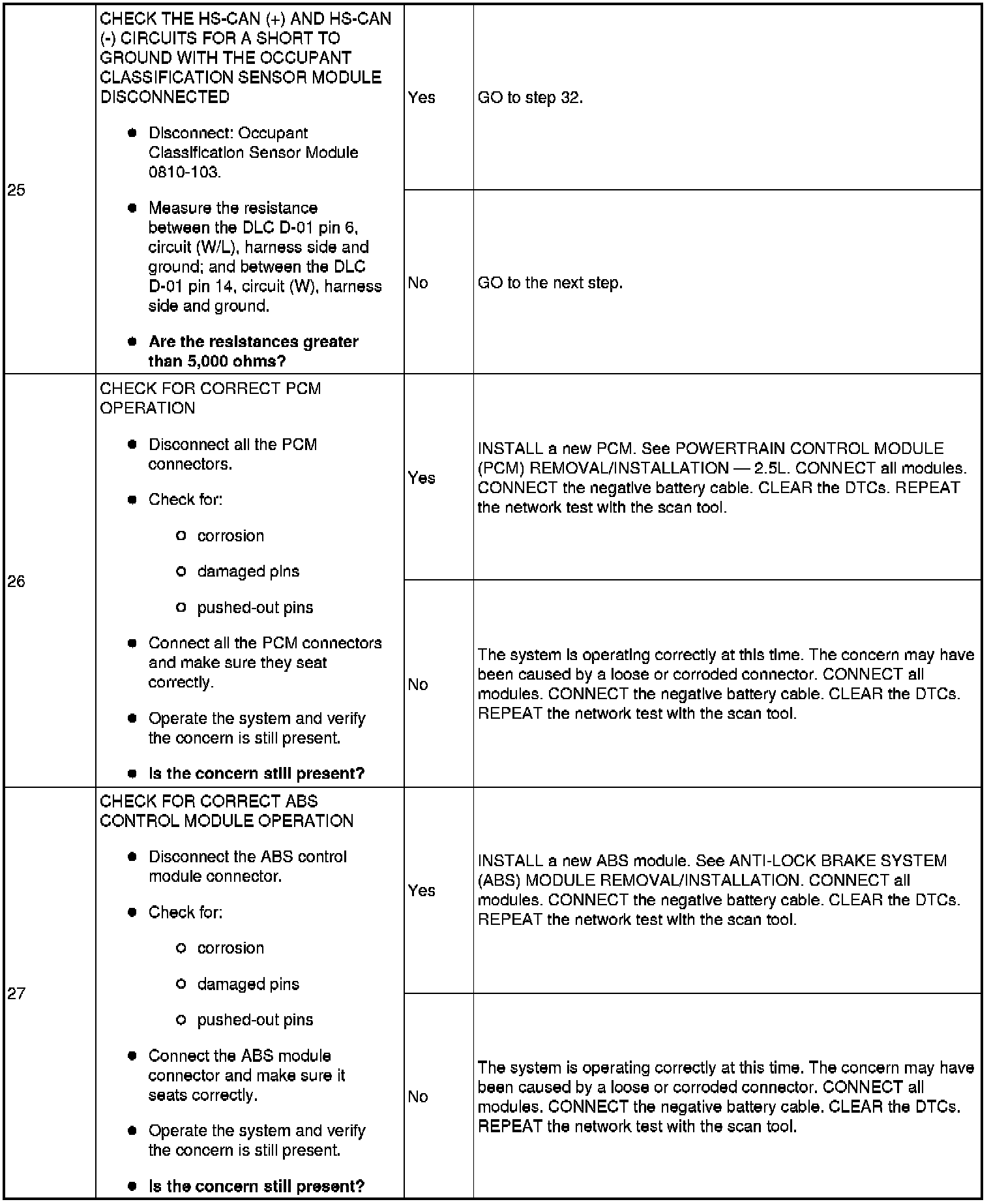 Pinpoint Test 16: No High Speed Controller Area Network (HS-CAN) Communication, All Modules Are Not Responding