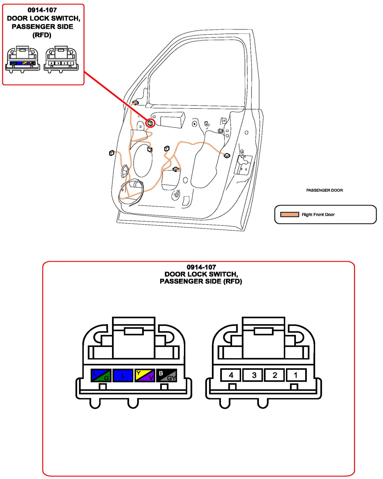 Door Lock Switch, Passenger Side:
