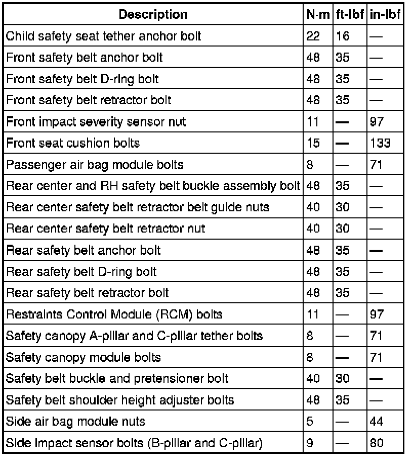 Restraints and Safety Systems: Specifications