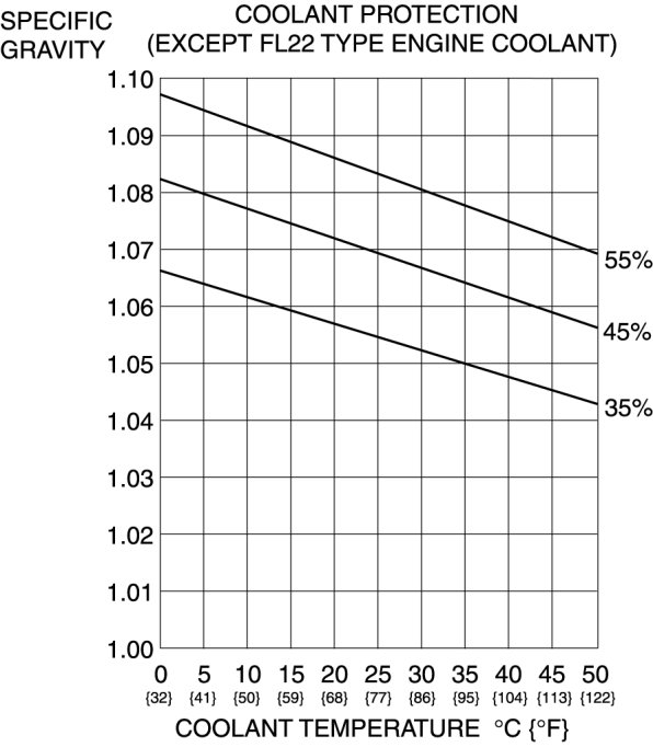2. Determine the engine coolant protection level by referring to the graph shown in the figure.