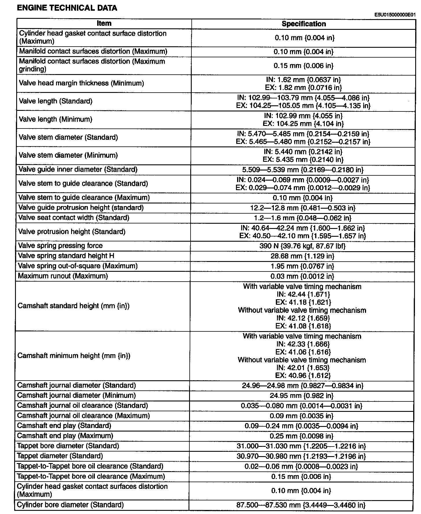 Engine Technical Data: