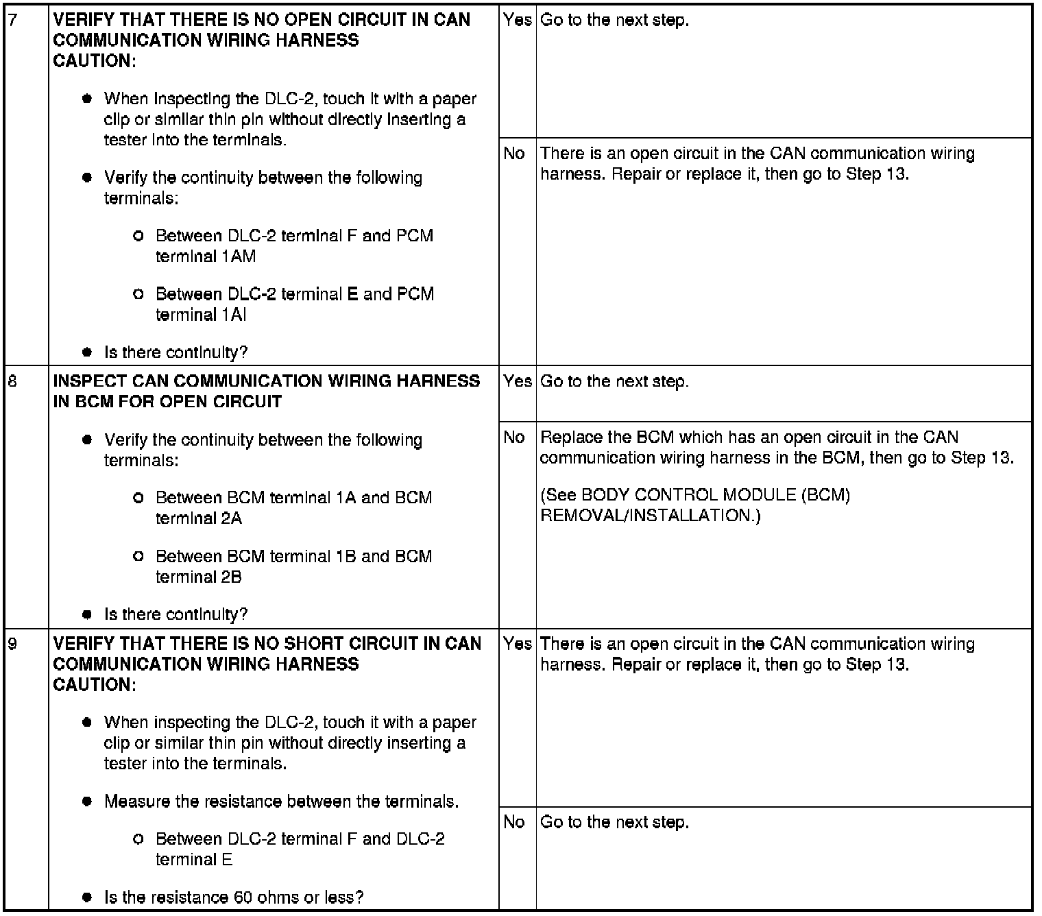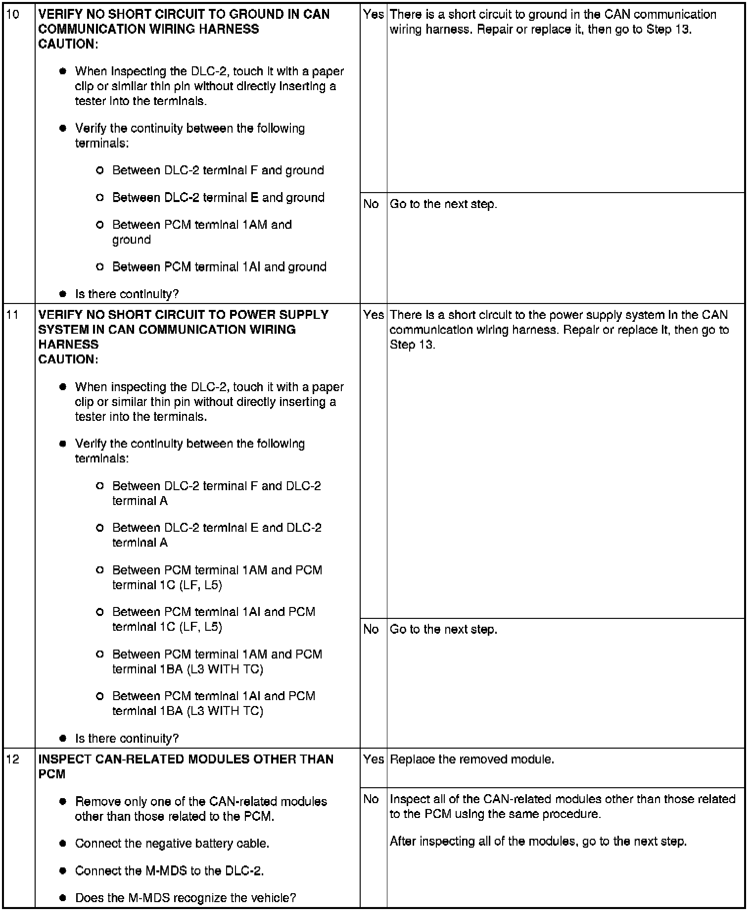 - Possible causes of communication errors between the M-MDS and vehicle include communication circuit interruption due to an open circuit in the CAN communication wiring harness, or poor contact of connector terminals, or a BUS OFF condition due to a short circuit in the CAN communication wiring harness.