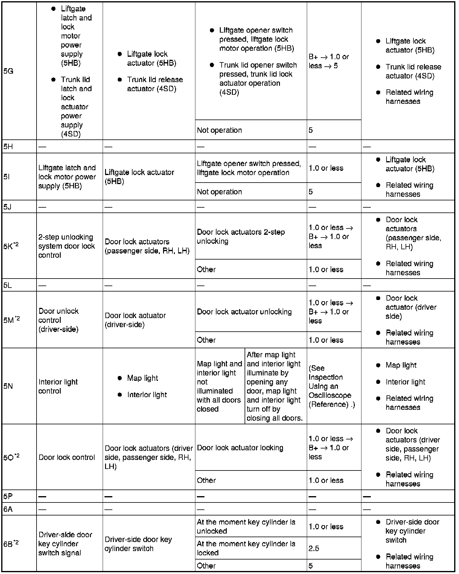- Lock/unlock input (passenger-side door lock-link switch) (rear door lock link switch (RH, LH)): 6J (+) and body ground (-)