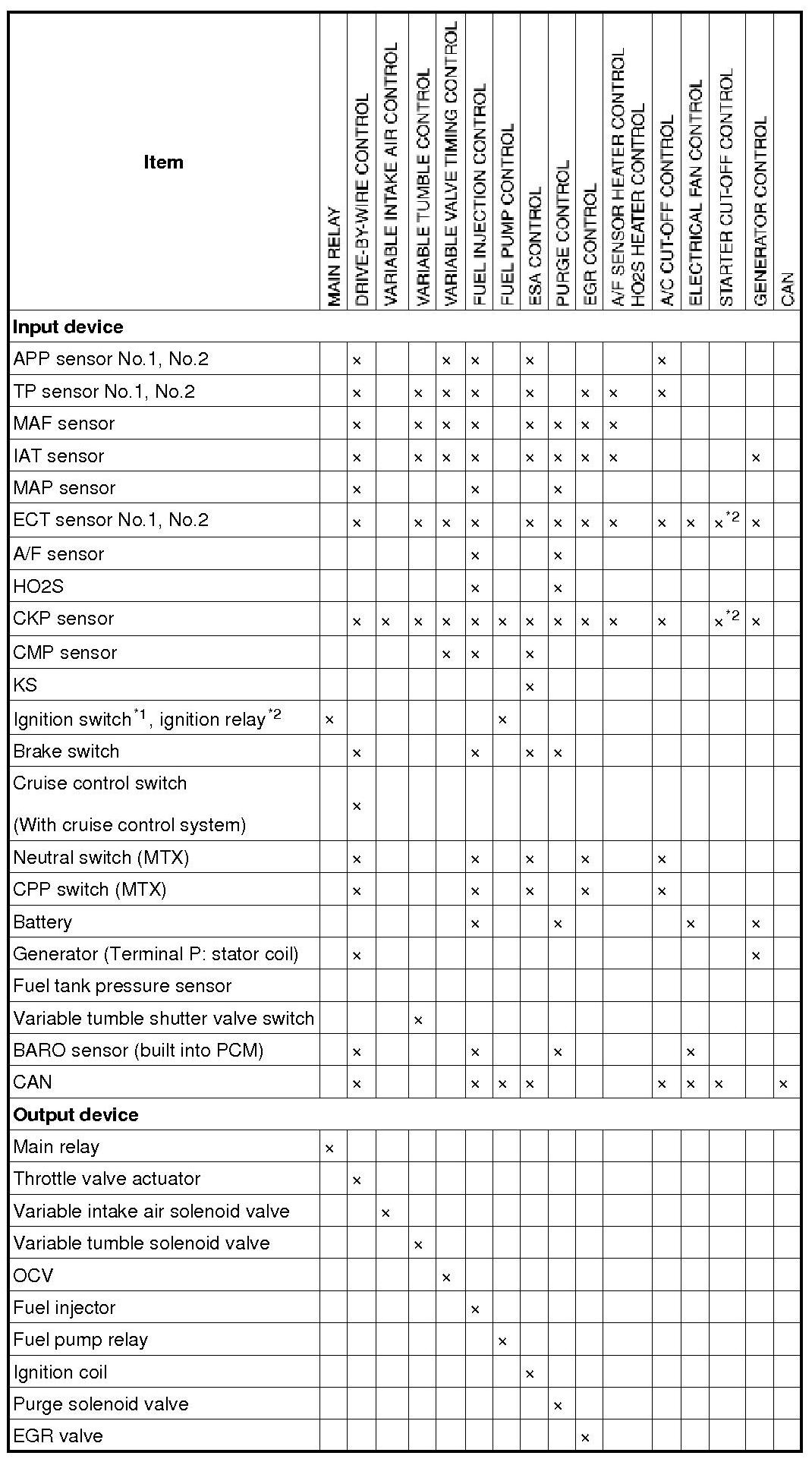 Home >> Mazda >> 2010 >> 3 L4-2.5L >> Repair and Diagnosis >> Powertrain Management >> Computers and Control Systems >> Description and Operation >> Control System Device And Control Relationship Chart