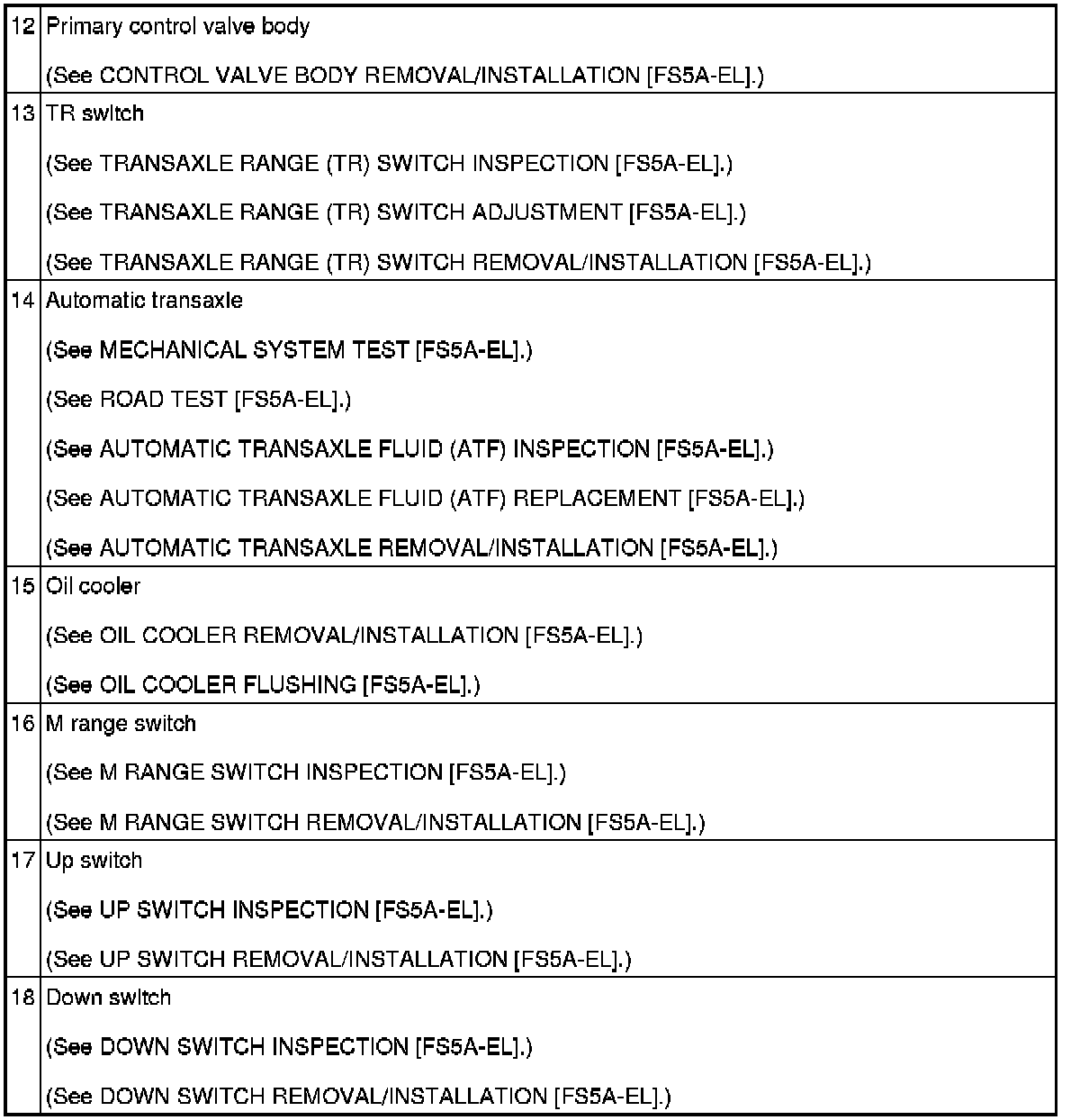 AUTOMATIC TRANSAXLE LOCATION INDEX [FS5A-EL]