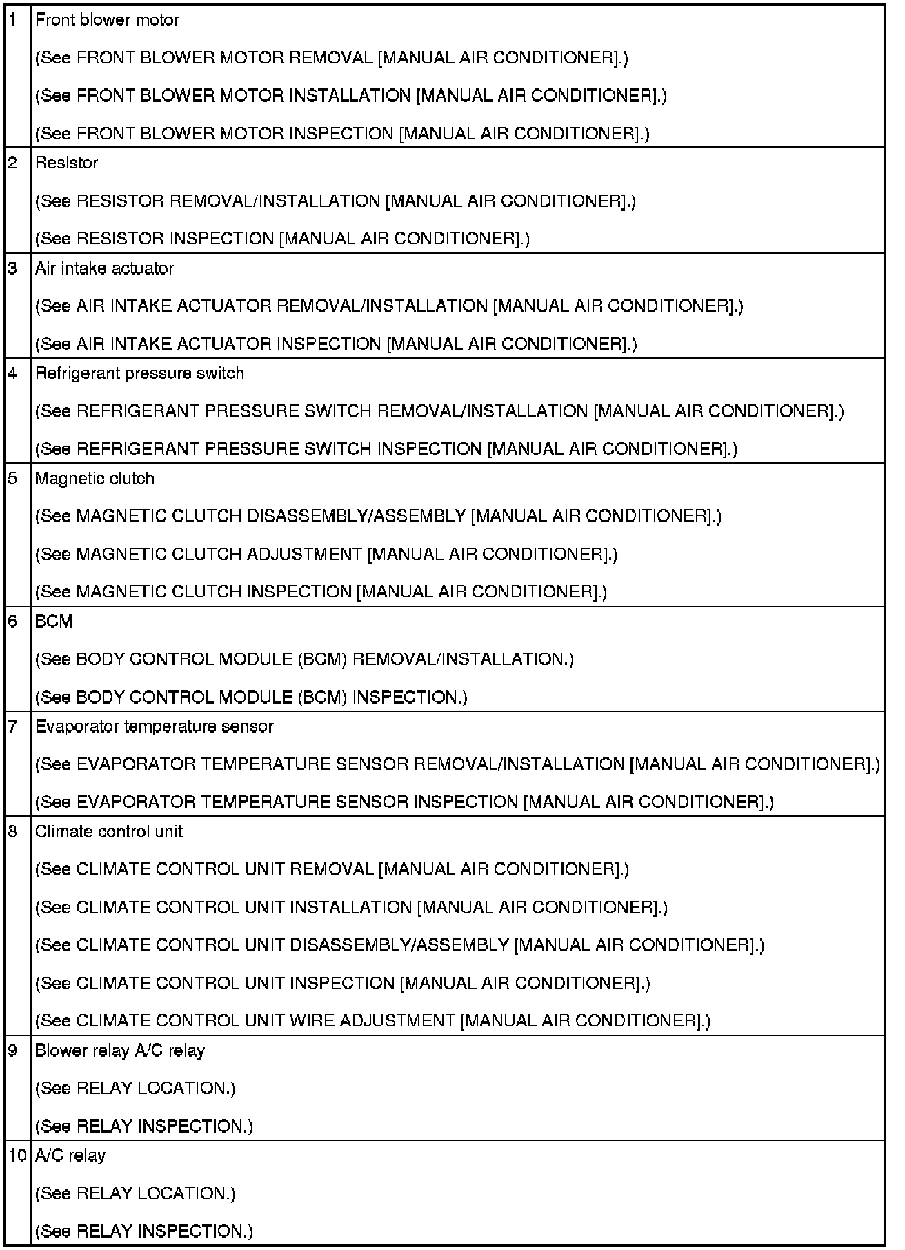 HVAC CONTROL SYSTEM LOCATION INDEX [MANUAL AIR CONDITIONER]