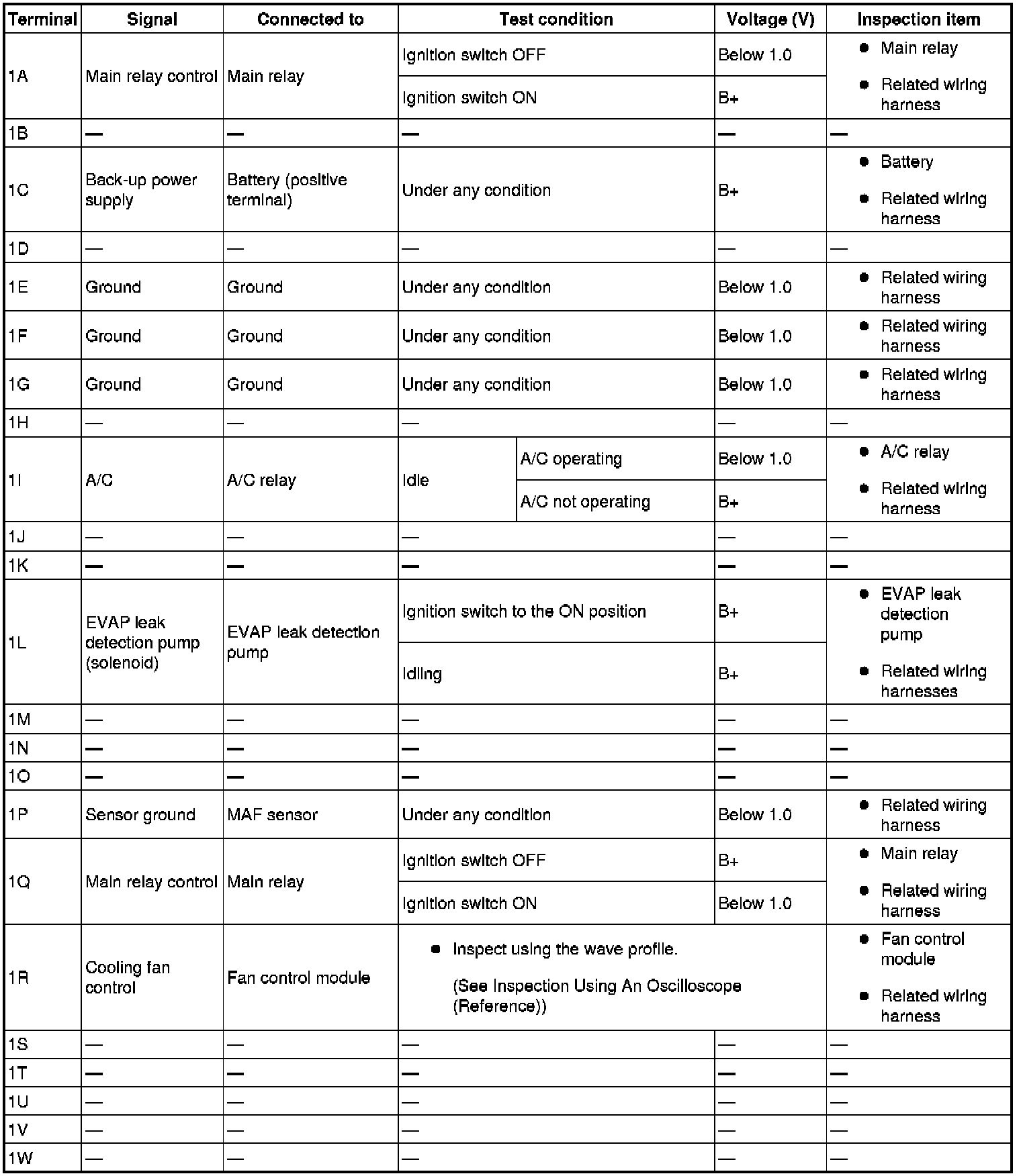 - The PCM terminal voltage can vary with the conditions when measuring and changes due to aged deterioration on the vehicle, causing false diagnosis. Therefore determine comprehensively where the malfunction occurs among the input systems, output systems, and the PCM.