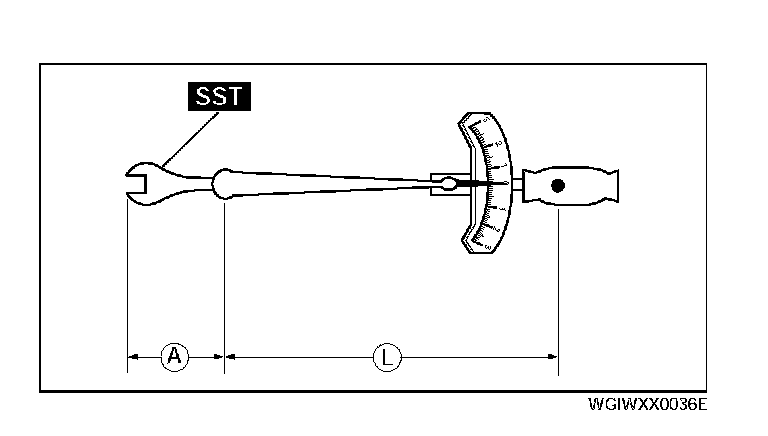 ^ When using a torque wrench-SST or equivalent combination, the written torque must be recalculated due to the extra length that the SST or equivalent adds to the torque wrench. Recalculate the torque by using the following formulas. Choose the formula that applies to you.