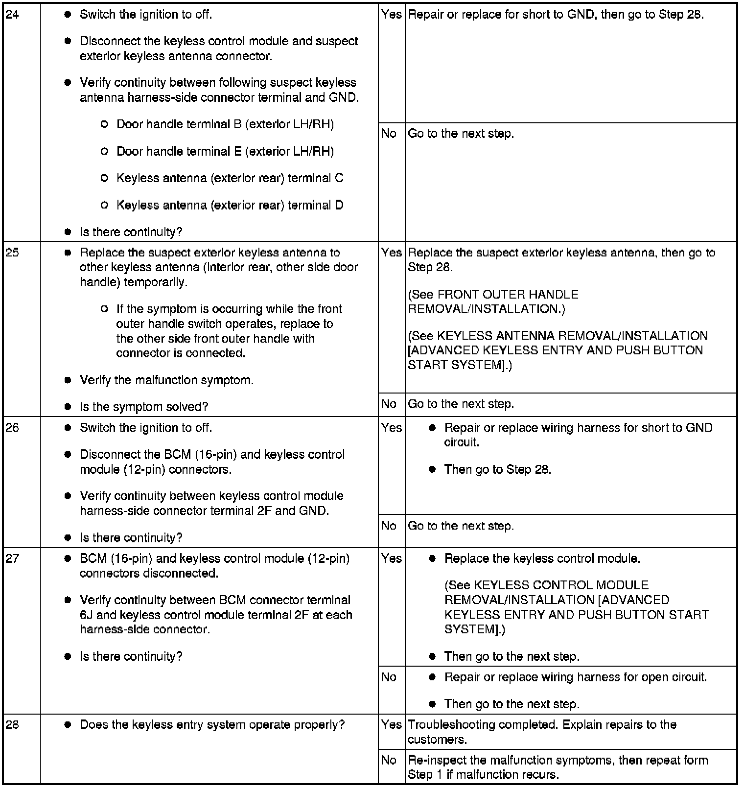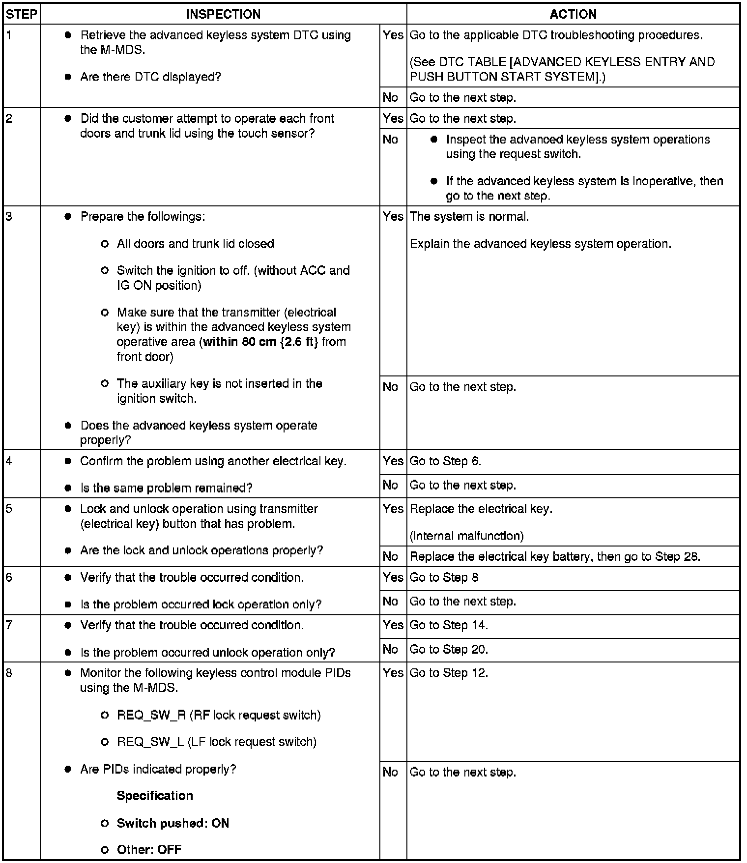 Home >> Mazda >> 2010 >> 6 L4-2.5L >> Repair and Diagnosis >> Body and Frame >> Locks >> Keyless Entry >> Testing and Inspection >> Symptom Related Diagnostic Procedures >> Advanced Keyless Entry And Push Button Start System >> No.2 Advanced Keyless Entry Function Inoperative - Advanced Keyless Entry And Push Button Start System