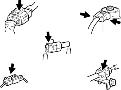 - Before disconnecting connectors or removing electrical parts, disconnect the negative battery cable.