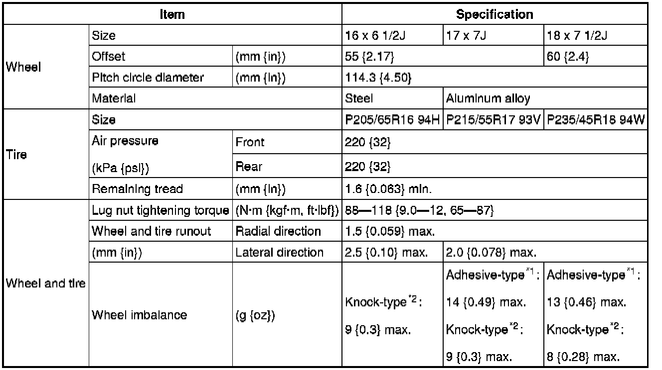 One balance weight: 60 g {2.12 oz} max. If the total weight exceeds 100 g {3.53 oz} on one side, rebalance after moving the tire around on the rim. Do not use three or more balance weights.