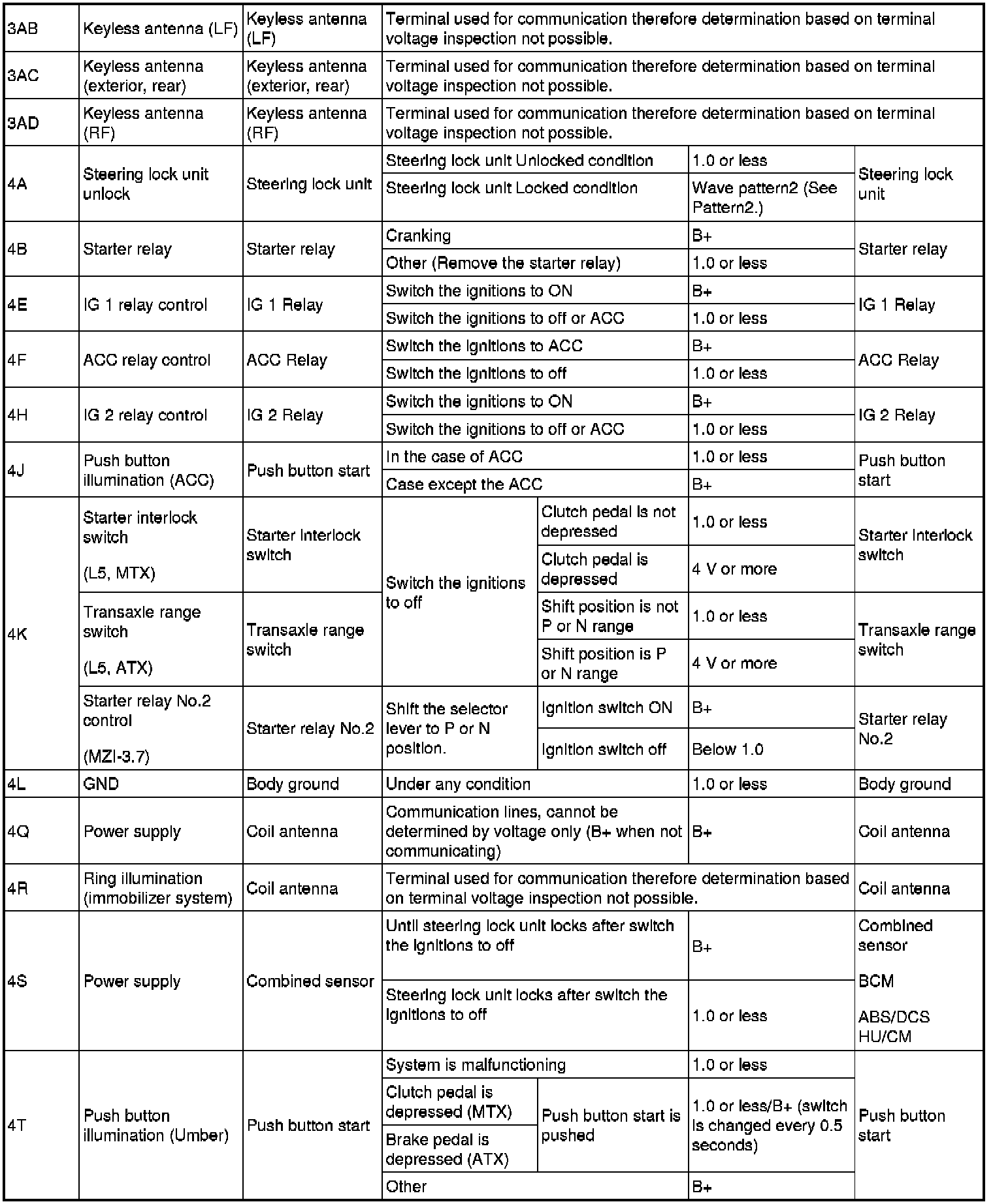 Home >> Mazda >> 2010 >> 6 V6-3.7L >> Repair and Diagnosis >> Body and Frame >> Locks >> Keyless Entry >> Keyless Entry Module >> Testing and Inspection >> Component Tests and General Diagnostics >> Keyless Control Module Inspection - Advanced Keyless Entry And Push Button Start System