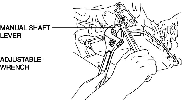 1. Set the adjustable wrench as shown to hold the manual shaft lever and tighten the manual shaft nut.