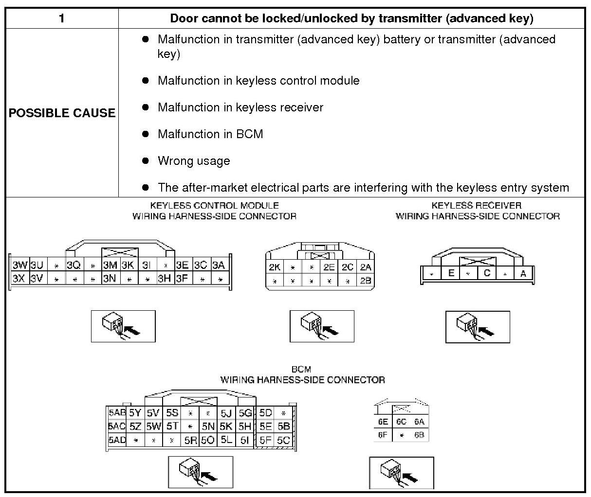 No.1 Door Cannot Be Locked/Unlocked By Transmitter (Advanced Key) - Advanced Keyless Entry and Start System